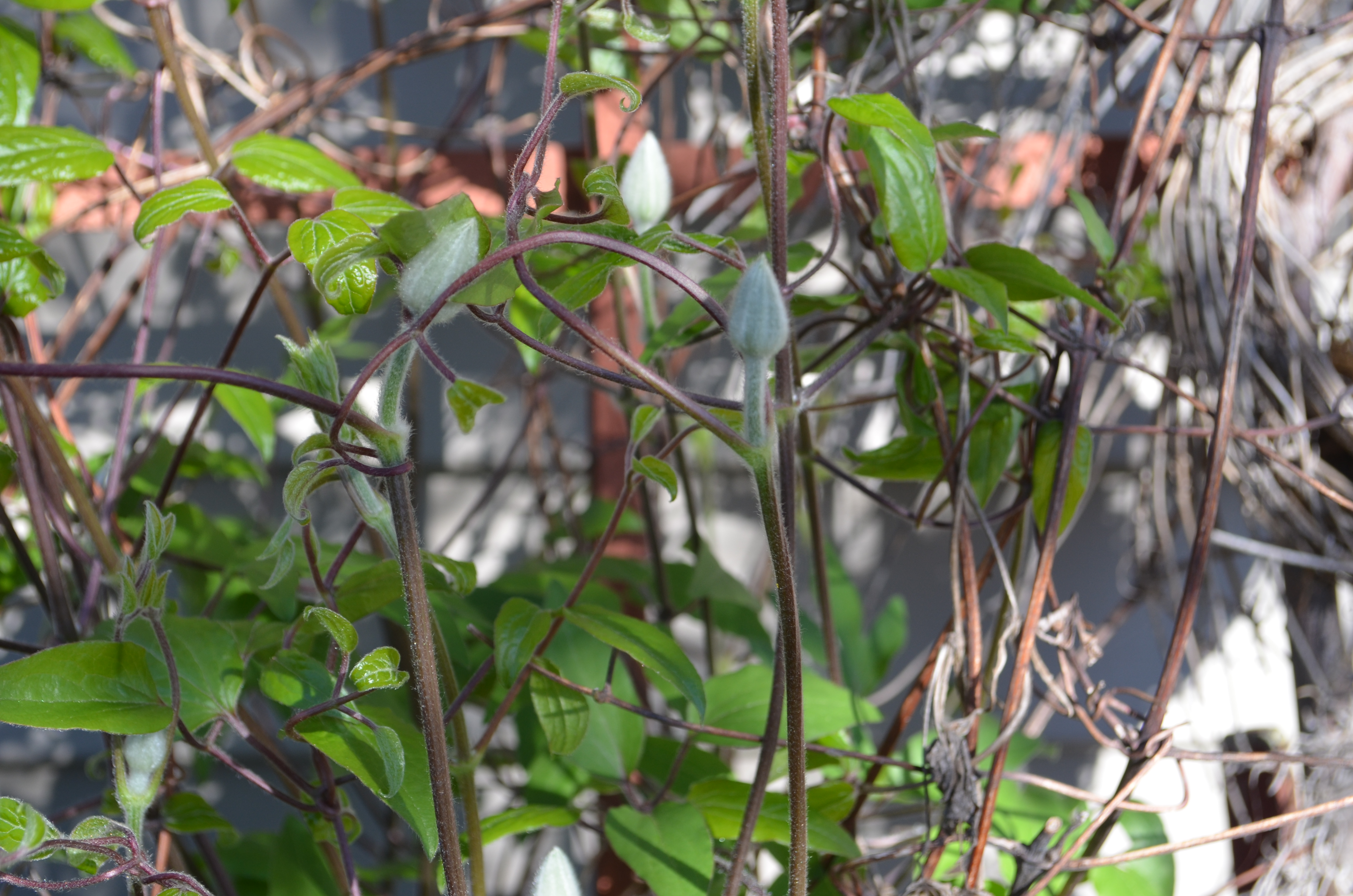 Photo again from Brushwood. I did finally dare to plant this clematis here in my dry sandy soil, it is right next to the hose and and although not flowering yet , it is alive and growing , fingers crossed.