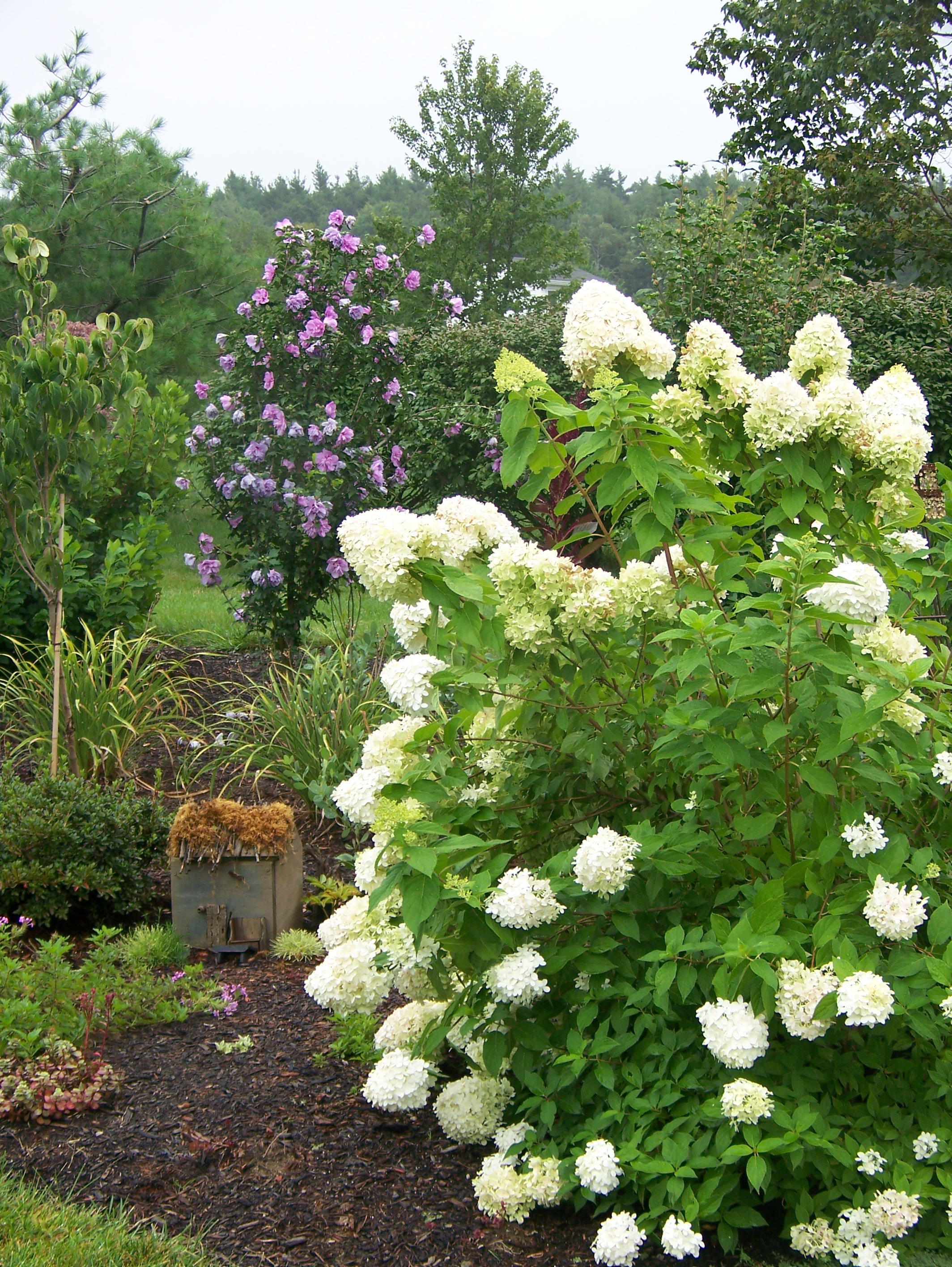 Another positive side of current events is that we are finally getting a fence around the side garden which I think will add lots of character, and new places to plant vines, and a whole new shrub bed near the road. Hmmmmmm……what shall I plant? Criteria to be met….1.)fall color….2.)winter interest (structure,berries,etc)….3.)cheap 😉 ……any suggestions?