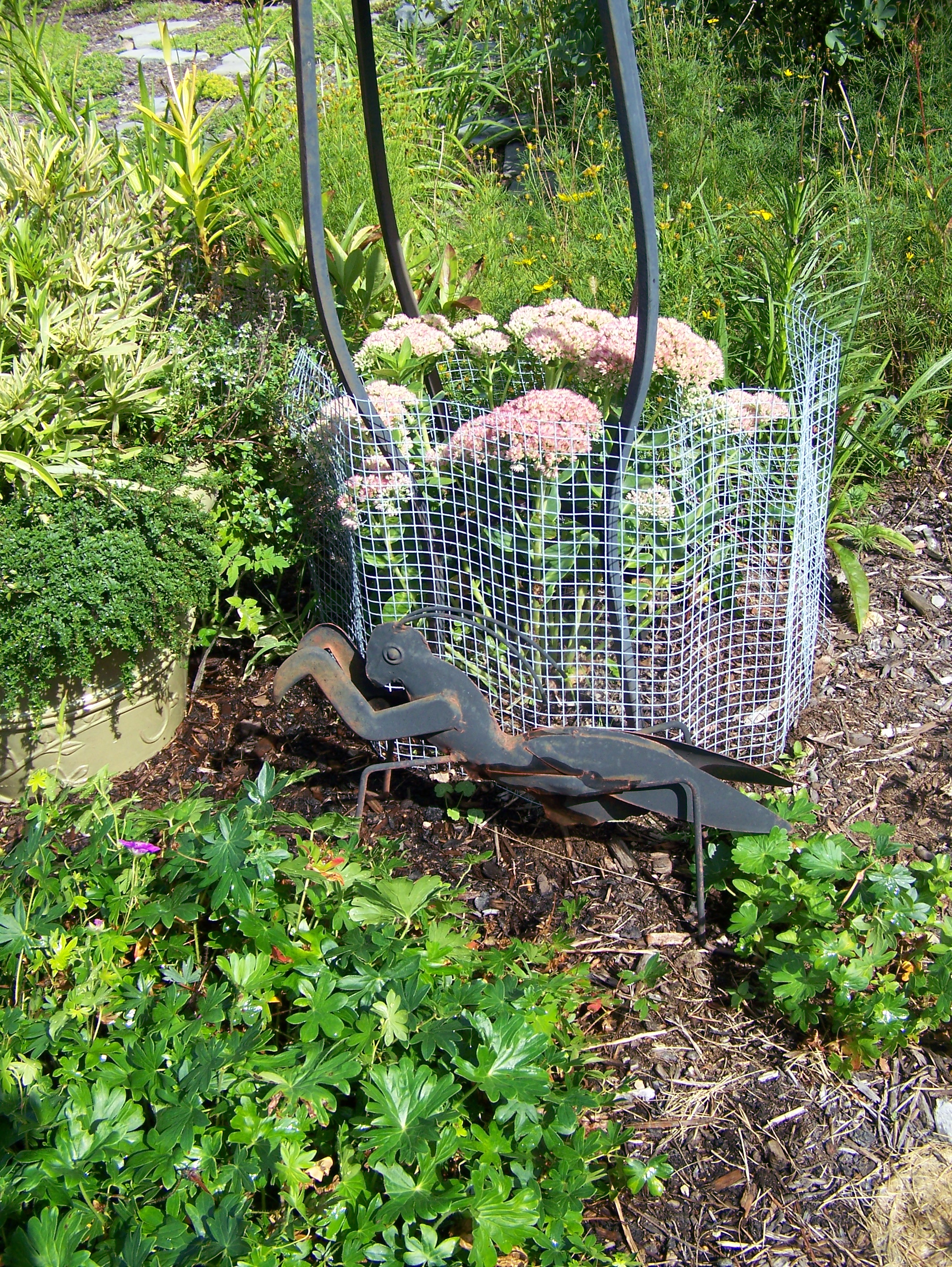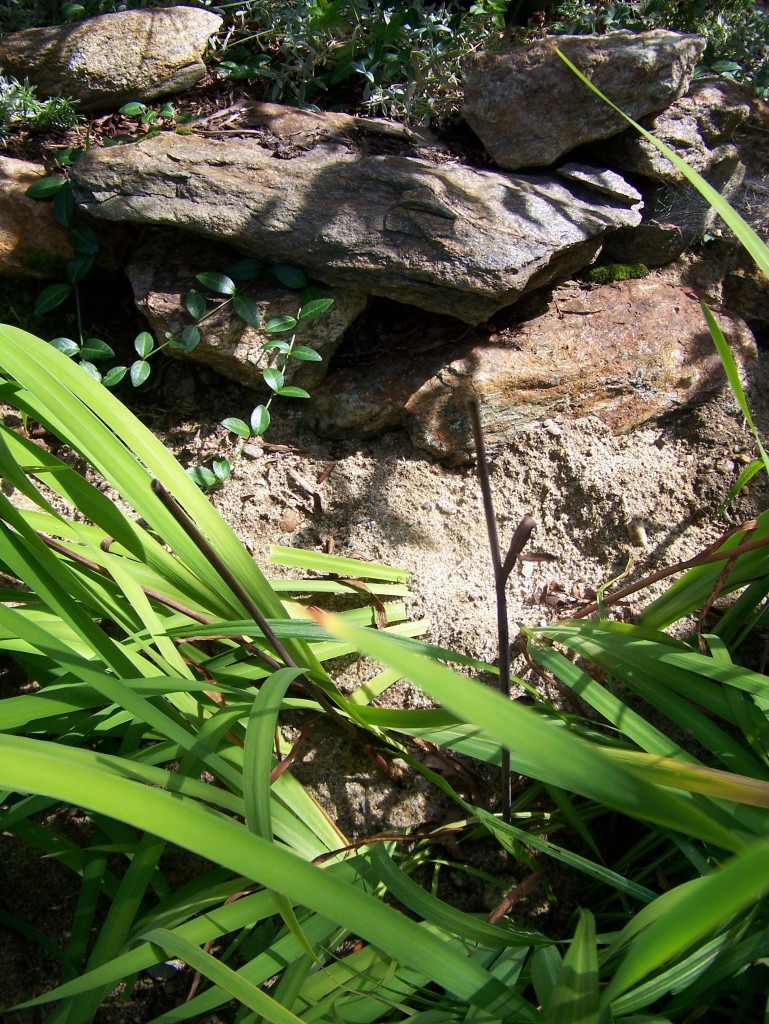 On the plus side, the puppy , her name is Pumpkin, adores the garden. She loves the ground cover plants to hop all over, is thrilled by the arching dangling flowers of the guara, checks out the cool nooks under every shrub, and to my great dismay, puts every plant in her mouth. Neither of the other dogs have ever done this, so now I must brush up on the poisionous no-no’s and really work with her to learn to not taste everything in her path.