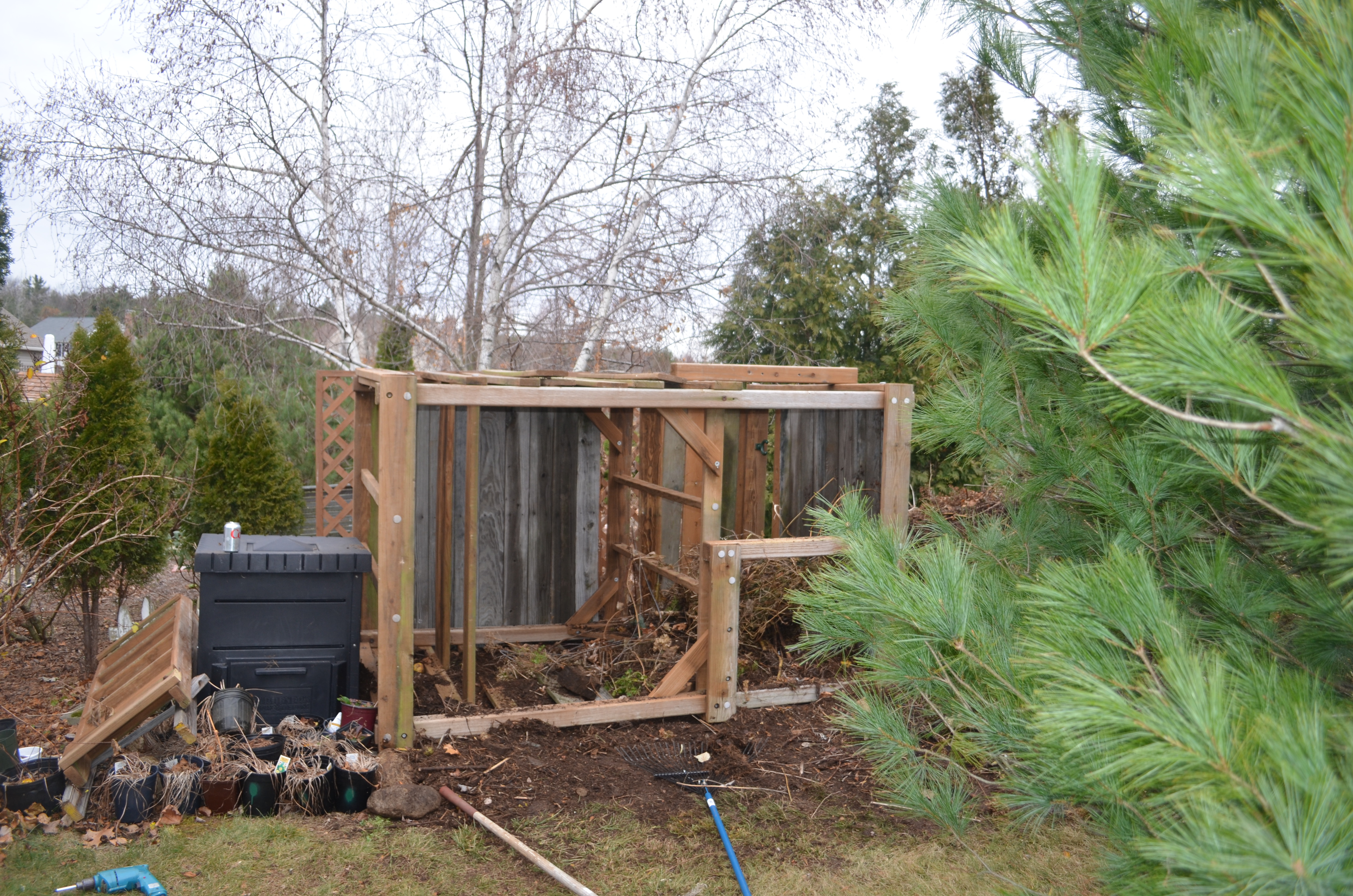 This morning , in a very grumpy drag my feet sort of way, I headed to out “fix” the compost area.