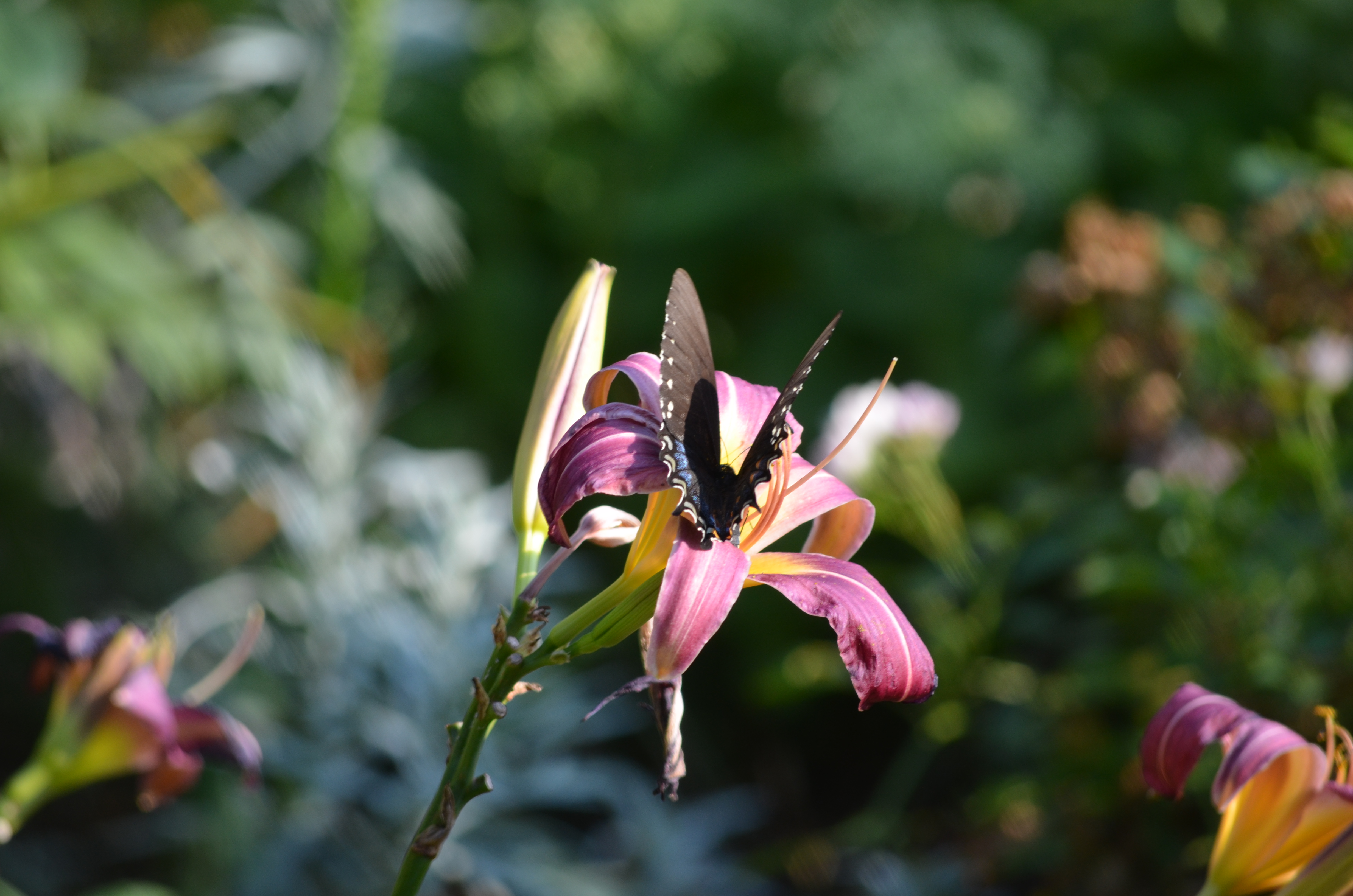 Then , just when my days feel like one endless garden catstrophe after the next, we get a few rainstorms and things start to perk up, the beetles finish up their eating/mating frenzy and dissapear, the late summer bloomers start to shine, and I walk around here with a smile on my face and a song in my heart as I watch the butterflies and hummingbirds frolic amoung the blosssoms…..no, wait…that’s not me…that was a TV commercial or a Disney movie flashback. Who am I kidding? I walk around here with maybe a hopeful glimpse at a beautiful flower, but knowing full well there is a slug on it somewhere and that even though it feels much better in The Burrow today than it did yesterday, nature is not done with me yet.