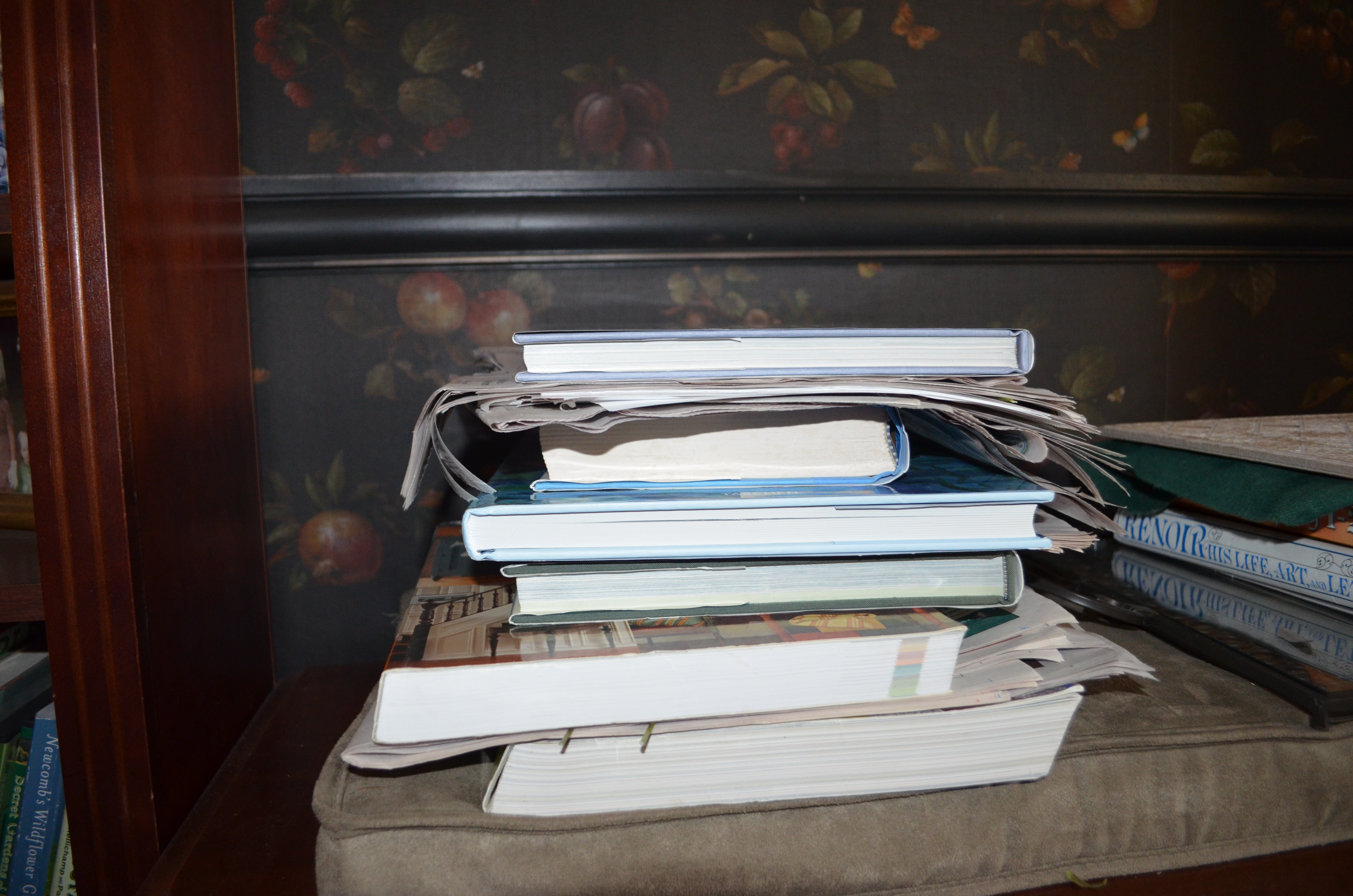 And on and on it goes, paper by paper book by book, a virtual time capsule of the blooming year here in and around the Burrow.