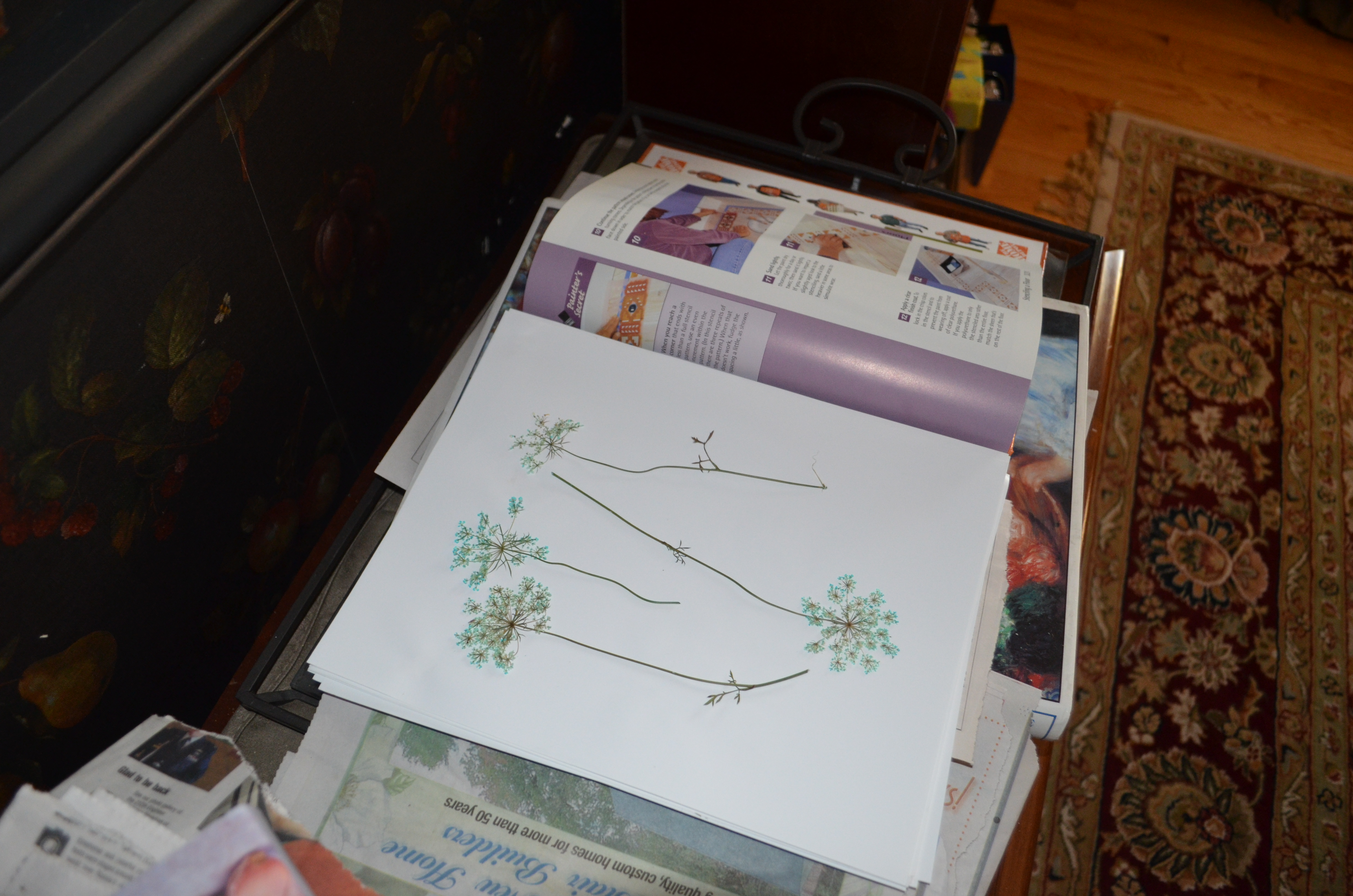 And how do I know this? The flower presses are groaning with the weight of layer upon layer of the pressed blooms and the heavy books that help weight them down before they go to the big press in the cellar.