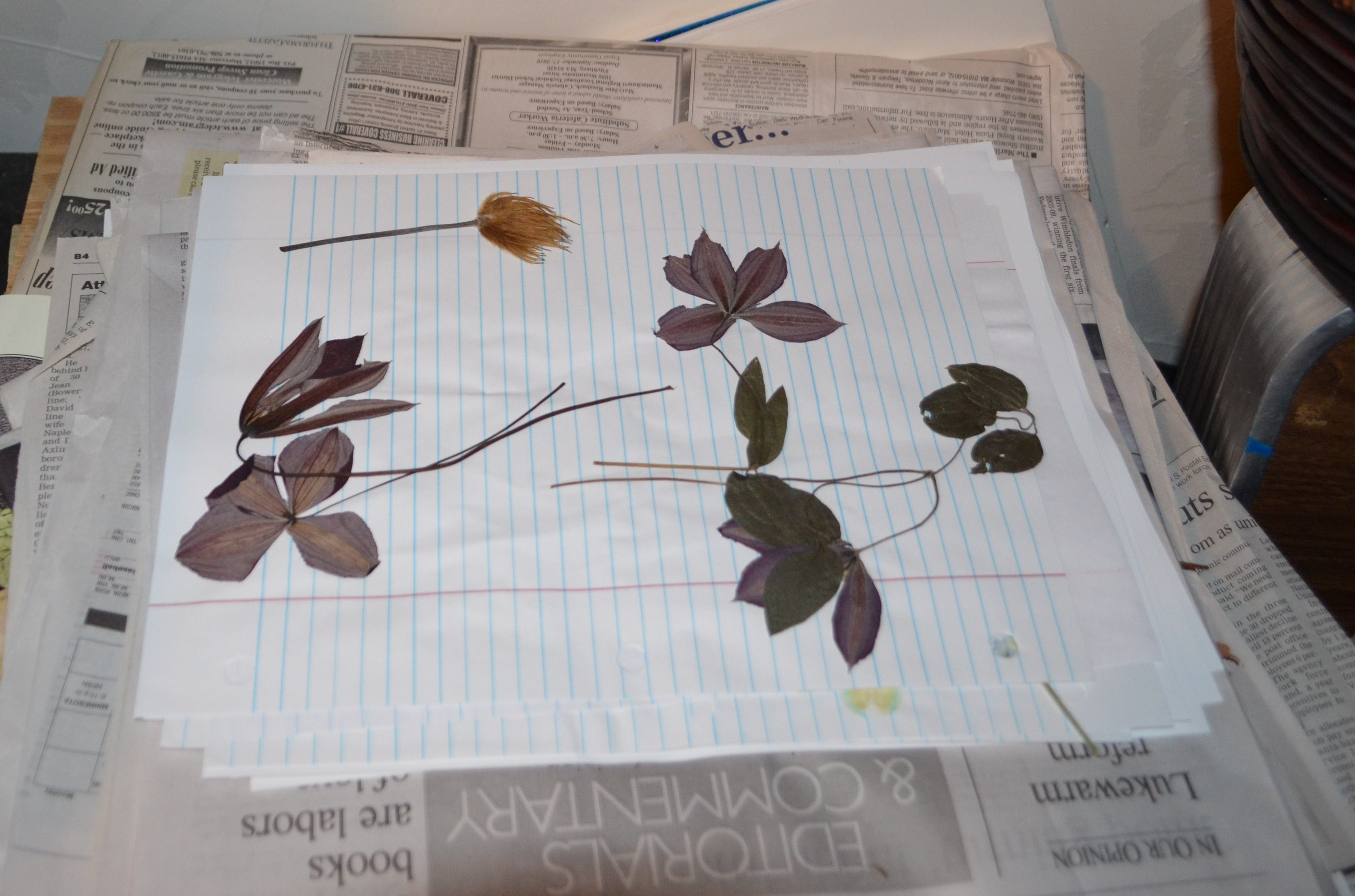 Even on the busiest of days I have to stop here and there in the garden to grab a few leaves, blossoms or seedheads to get in the presses or I won’t have enough material for all the Pressed Flower Workshops I have coming up starting in September and going right through next May. They are stacked up from the very latest mums on the top all the way down to the spring blooming clematis on the bottom.