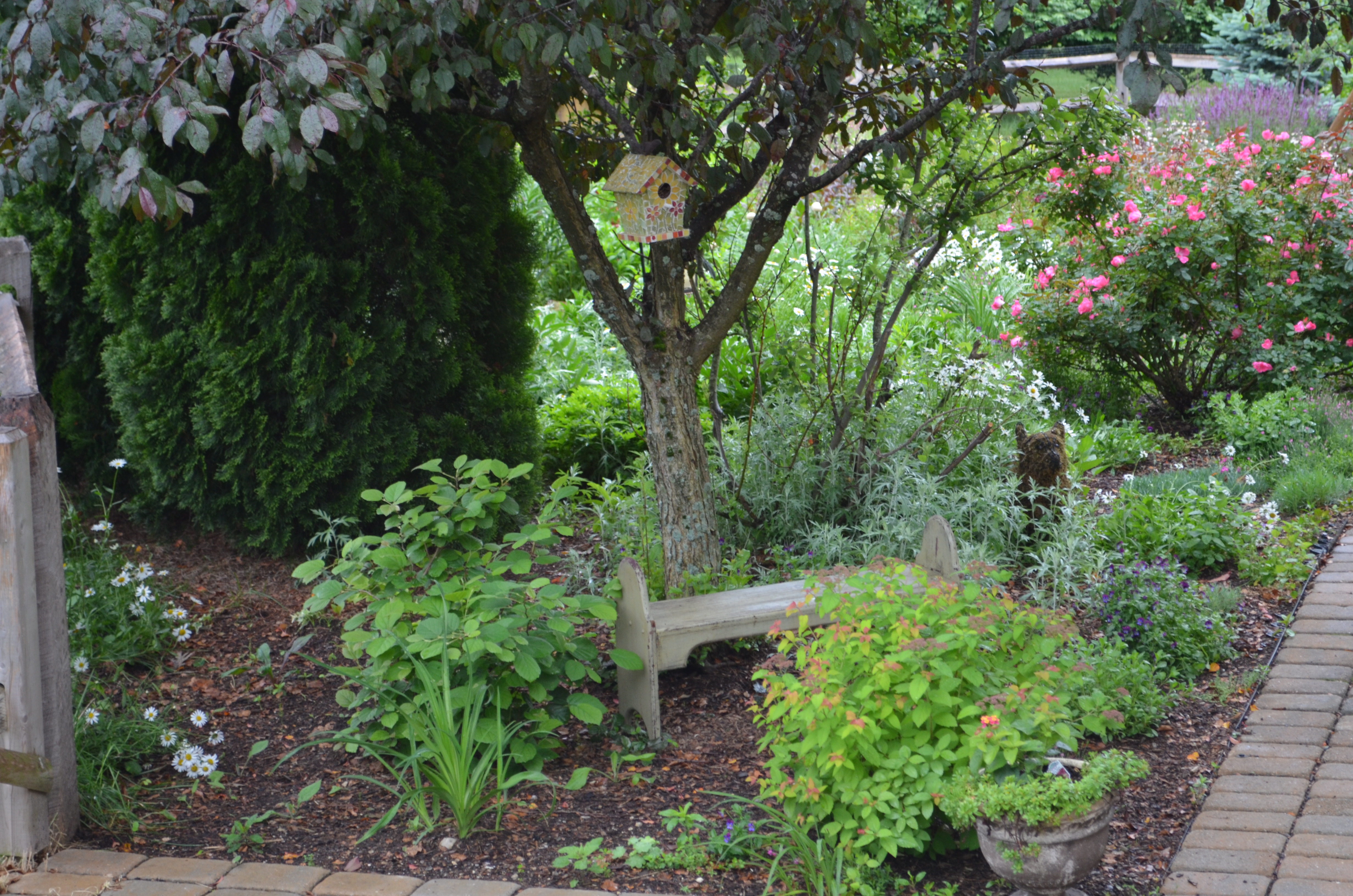 Dianthus? I remember you! You lit up the pink garden for weeks while I was spreading compost and mulch. Pretty geranium flowers? You carried on through the back 40 for the whole of spring while I was out caging clematis plants off from the bunnies, and you will make a new layer in the fall section after the re-bloom you are so graciously giving me now.