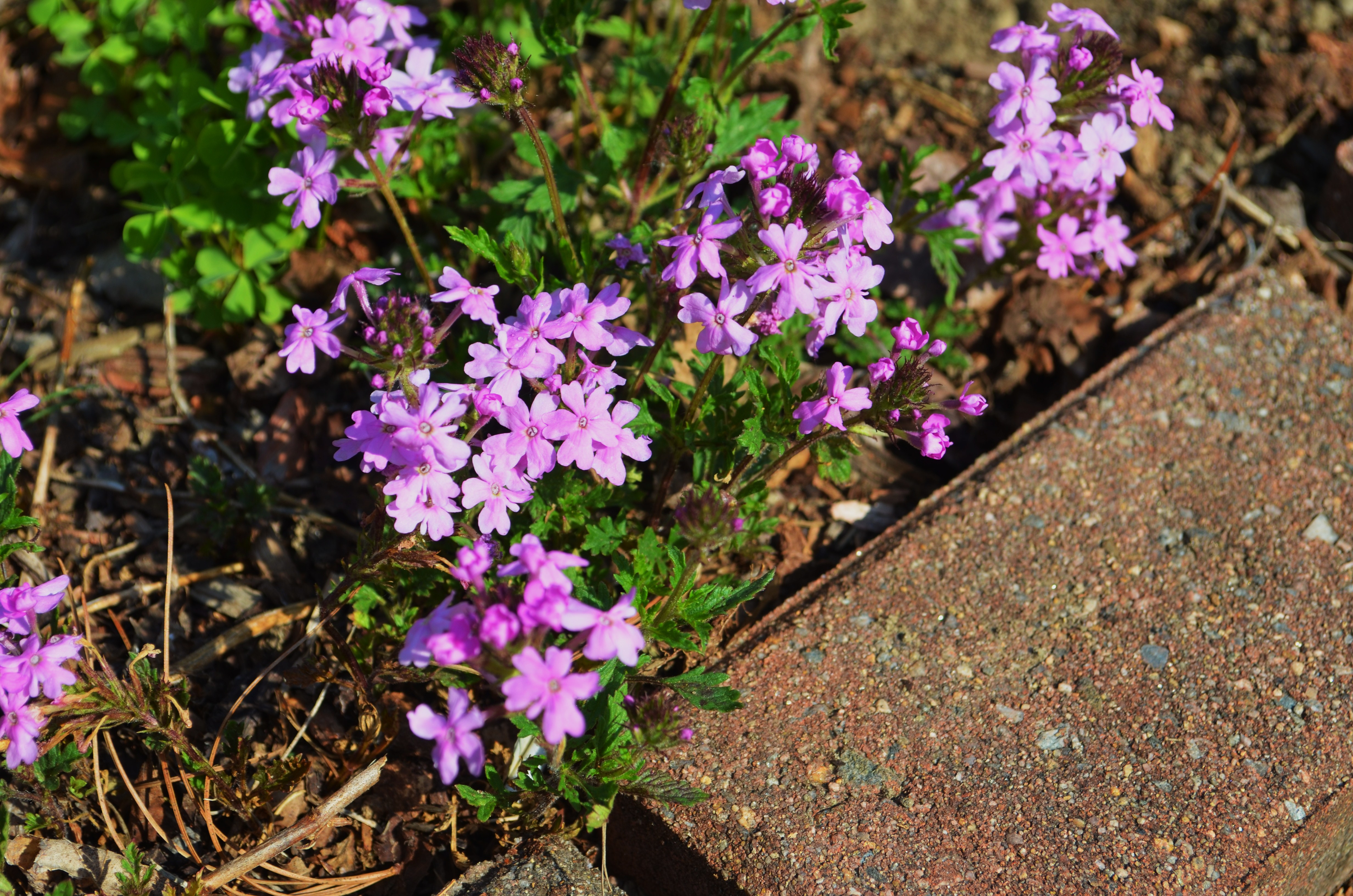 Here in The Burrow, it is all sunshine all the time.( Just to be clear I am referring to the garden, not the gardener lol). There are very few shady spaces and that makes it easy to have waves of flowers season long in a brilliant blooming succession until a hard frost ends it all. The only issue I have found when planting in the sun is the dearth of great ground cover plants. So very many of my favorite ground covers are only happy in the shady parts of the garden and fry in my sun. I use many low growing sedums, dianthus, moss phlox and some of the smaller campanula varieties here and there , but it wasn’t until I discovered verbena ‘Annie!’ that I was truly impressed.