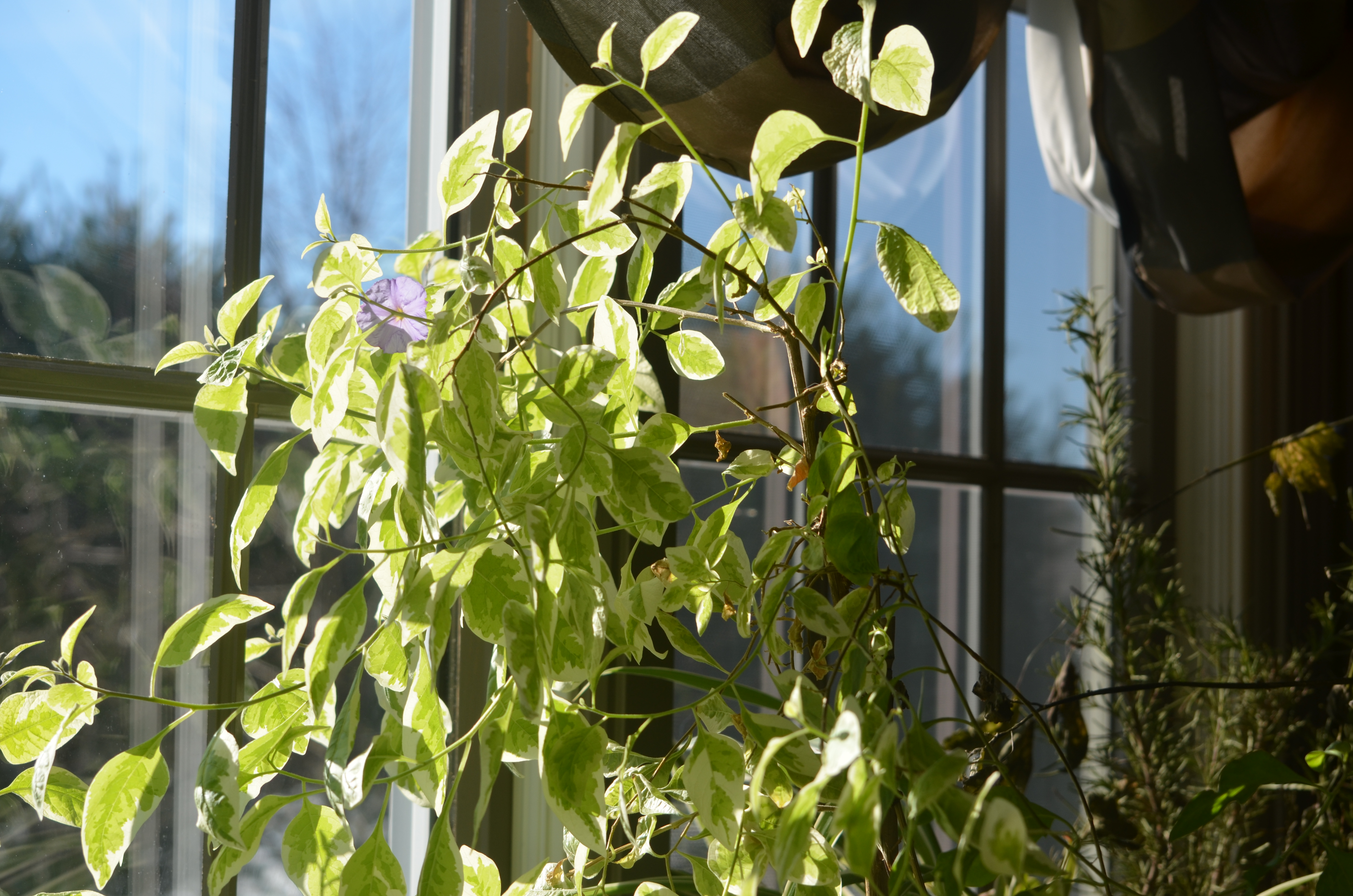 In that vein, I decided to add a plant profile of an easy to grow annual that not only gives garden joy outside in the summer but inside here all winter as well with very little in the way of effort to find and grow, the Blue Potato Bush Lycianthes rantonnetti ‘Variegata’. (Z9-11)