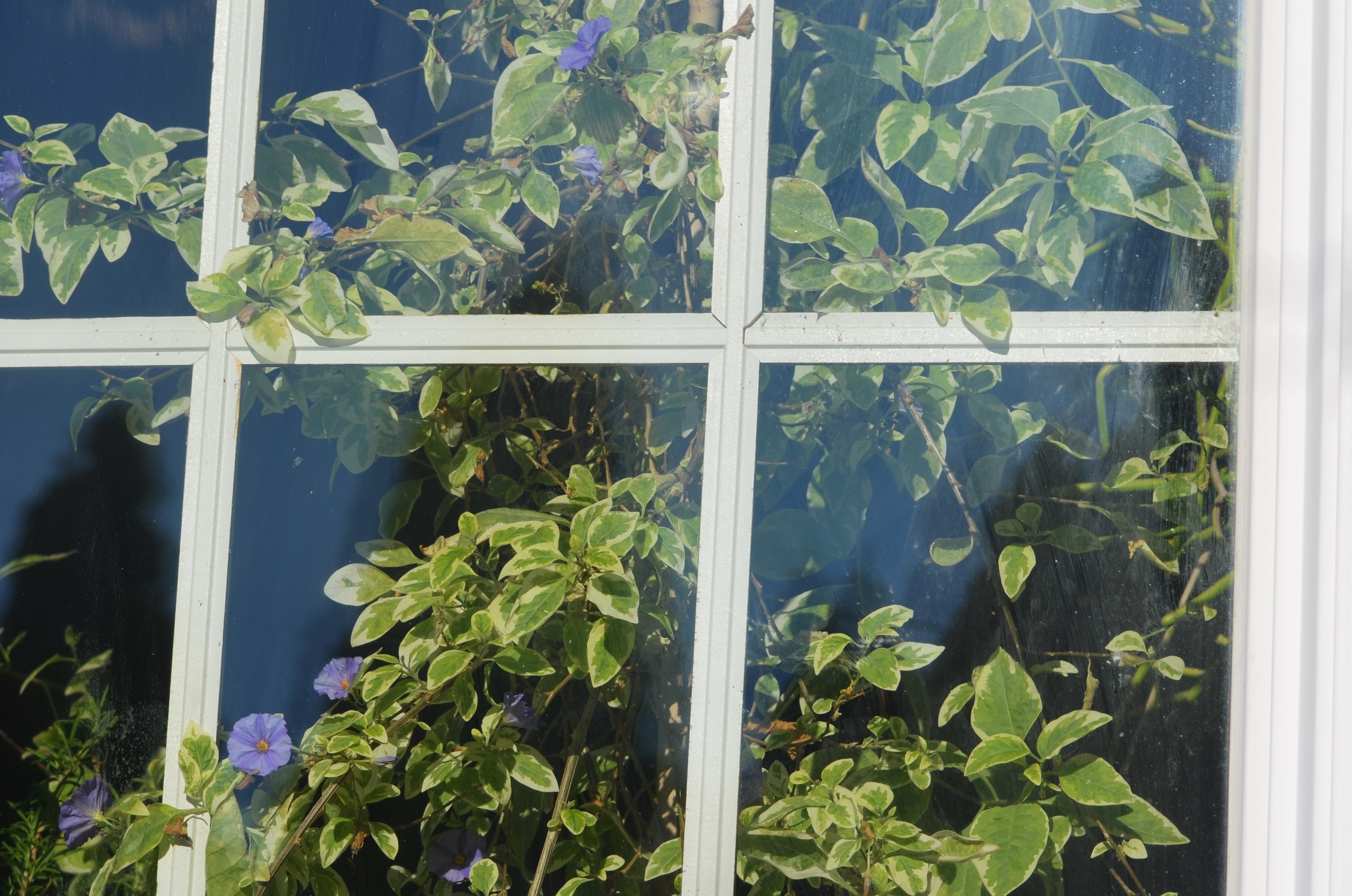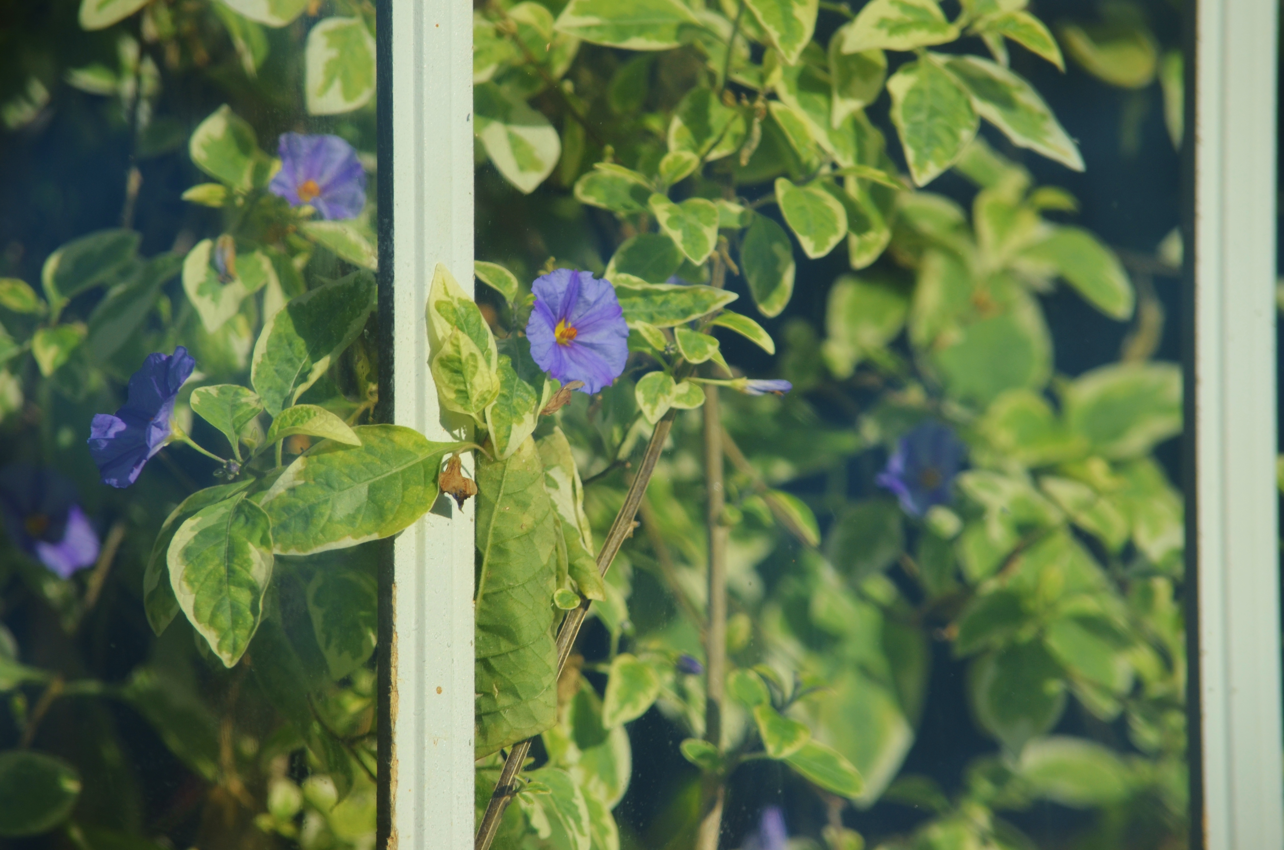 the blue potato bush viewed from the walkway outside